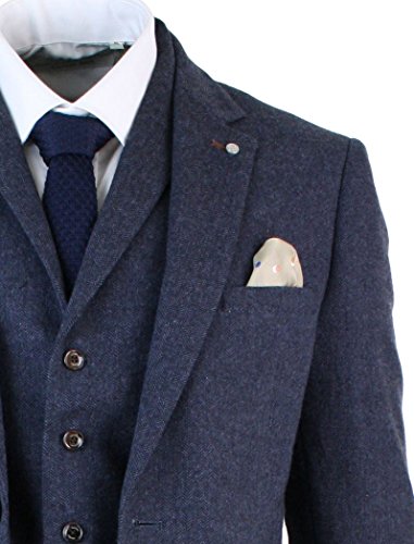 Cavani Uomo Cavani 3 pezzi misto lana a spina di pesce Tweed Vestito Blu Marrone Vintage Tailored Fit 38UK / USA & 48EU-JACKET, 32-PANTS abbronzatura