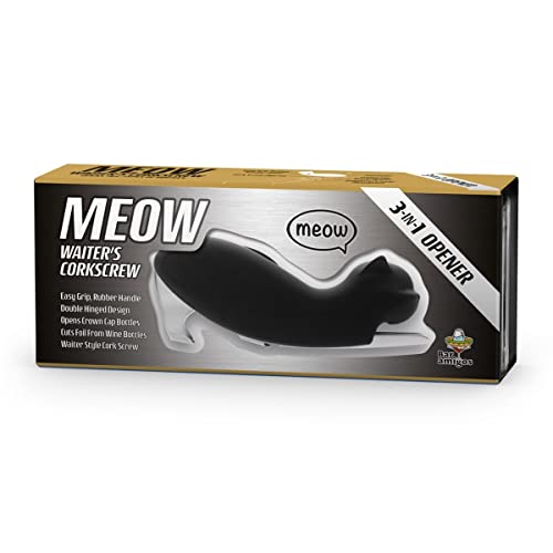 CKB LTD® - Cavatappi e apribottiglie per camerieri professionisti a forma di gatto, in acciaio inossidabile, con manico in silicone nero e taglia capsule