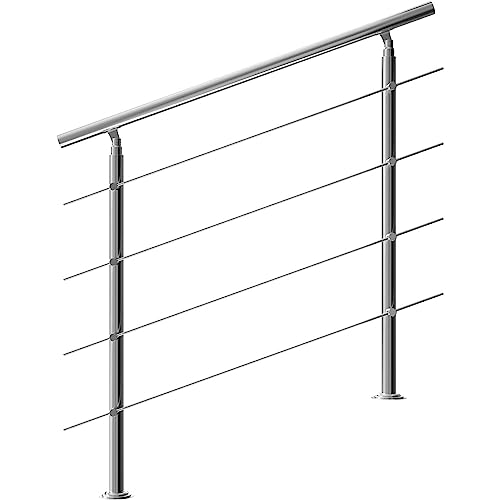 CAVATINY Ringhiera per corrimano in acciaio inossidabile per balaustra per scale Balcone con 4 traverse - Ringhiera per scale Balaustra per balcone in acciaio inossidabile (120 cm, 4 traverse)