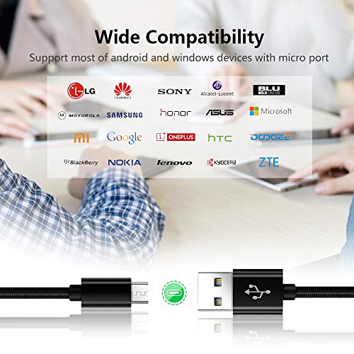 ③【Durabilita Con Nylon Intrecciato e Connettore in Allumino】 Cavo Micro usb carica rapida progettato con esterno intrecciato in nylon ultra resistente e giunture senza cuciture per una resistenza superiore alla rottura con una durata della vita di 5000 +. Il connettore in alluminio 3D aggiornato promette una connessione stabile anche con una custodia protettiva e non si surriscalda alle alte temperature.
