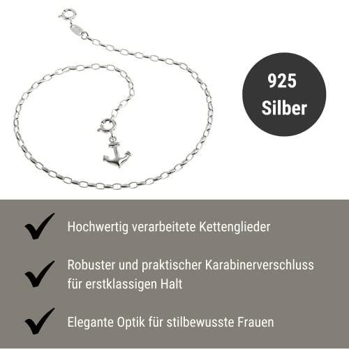 Cavigliera in argento (catenina a maglie ovali) con ciondolo a forma di ancora, larghezza 2,3 mm, lunghezza a scelta fra 23 e 30 cm, in vero argento 925 e argento, cod. 1235
