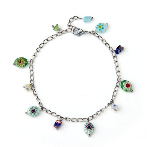 Cavigliera bracciale con pendenti vetro murano colorato