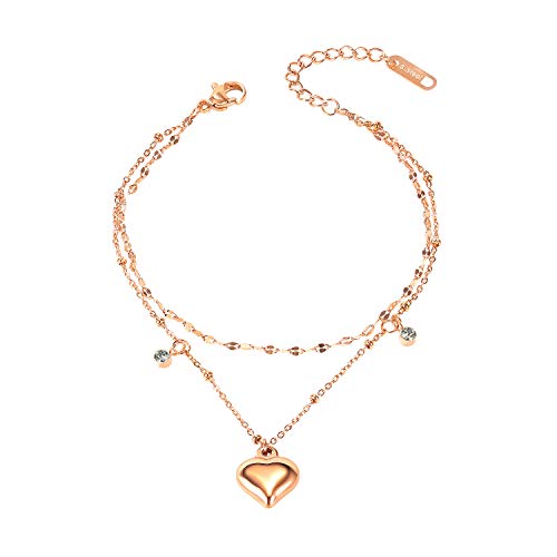 Cavigliera da donna con cuore, cavigliera impermeabile in acciaio inox adatta per la spiaggia, 21 cm, Acciaio inossidabile