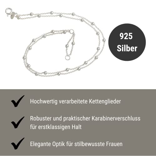 Cavigliera con sfere a 2 file - 1,3 mm di diametro - argento 925, lunghezza a scelta da 23 cm - 30 cm e Argento, cod. 1230