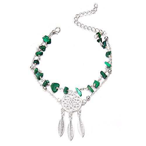 Cavigliere da donna in argento a doppio strato con ciondolo a forma di piuma bohémien e pietra turchese Bracciale alla caviglia comodo e pratico