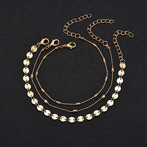 Cavigliere con perline in rame Carufin Cavigliere dorate con paillettes Accessori da spiaggia Gioielli per piedi regolabili per donne e ragazze