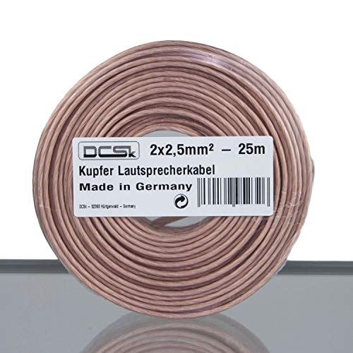 DCSk - 2 x 2.5 mm² - 25m -Cavo per altoparlanti - HiFi Cavo per Altoparlanti e Casse Audio per Auto, Rame puro, Trasparente