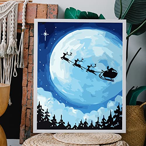 CAYUDEN Natale Dipingere con i Numeri, Christmas Paint by Numbers Paesaggio Dipingi con i Numeri per Adulti Principianti Bambini Età 8-12 Pittura con i Numeri con 3 Pennelli Painting by Numbers Kits