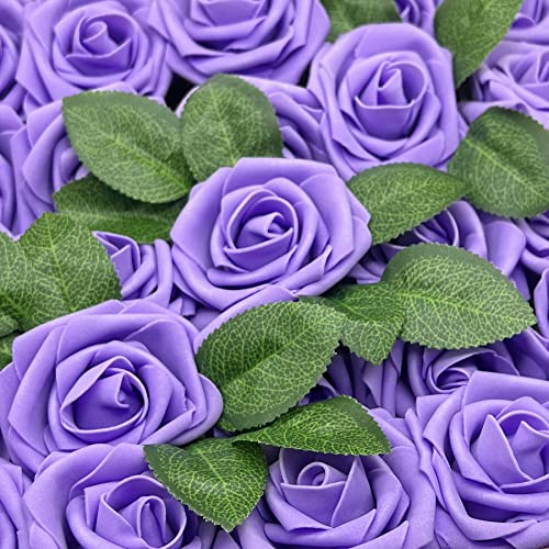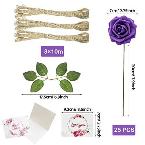 Cayway Fiori Rosa Artificiali, Artificiali Rose Schiuma Finte, Viola Rose in Finta Schiuma di Polistirene con Steli con Biglietti di Auguri per DIY Matrimoni Mazzi Festa Casa Stanza Decorazioni