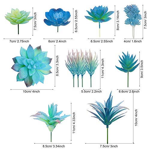 Cayway 21 Pz Succulente Piante Artificiali Blu Piante Grasse Finte Decorative Uncotted Faux Flower Succulente per Parete DIY Home Decor