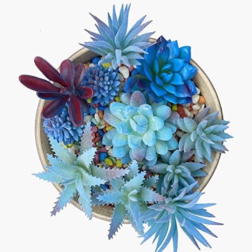 Cayway 11 Pz Succulente Piante Artificiali Blu Piante Grasse Finte Decorative Uncotted Faux Flower Succulente per Parete DIY Home Decor