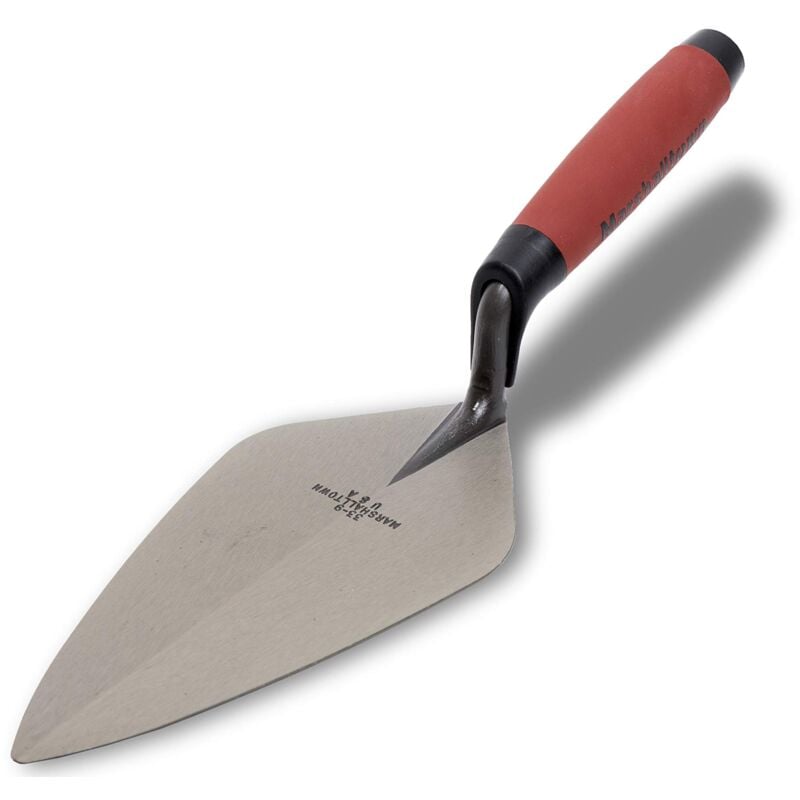 Le cazzuole Marshalltown sono progettate per durare nel tempo e offrono una qualità professionale per aiutarvi a lavorare su tutti i mattoni tradizionali o decorativi, blocchi e muratura. Come le altre nostre cazzuole per intonacatura, ogni cazzuola è forgiata da un unico pezzo di acciaio al carbonio di alta qualità, che è rifinito completamente a mano e lucidato alla perfezione per garantire una finitura pulita in ogni lavoro. La cazzuola è flessibile nonostante le dimensioni e il peso. L'impugnatura Durasoft è saldamente fissata al supporto. L'impugnatura brevettata è realizzata per ridurre la fatica perché si adatta molto bene alla mano. Il manico è sollevato in modo che lavorare con le nostre cazzuole sia divertente tutto il giorno. Questa cazzuola ha una punta larga.