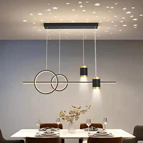 Cblbser Lampada a Sospensione LED, Lampadario tavolo da pranzo dimmerabile con telecomando sospensione, faretto a proiezione stellare proiettore Lampadari, Lampadario soffitto 100cm 55W (Nero)