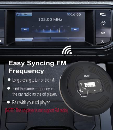 [Trasmettitore FM: premere a lungo per accendere la radio FM e collegarsi alla stessa frequenza e quindi associare il lettore CD. Il lettore CD supporta la frequenza di 87,5-108 MHZ. (NOTA: questo lettore CD non supporta radio FM)