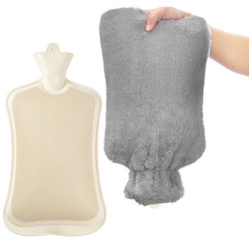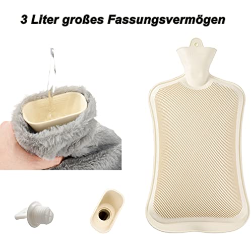 CCILAND Borsa dell'acqua calda XL grande,3 litri,con rivestimento in gomma,morbida,inodore,calda a lungo termine,per dolori mestruali,freddo e stomaco,grande regalo per donne(forma lunga da 3 litri)