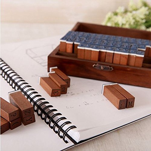 CCINEE Set of 70pcs Vintage Style Wooden Rubber Alphabet Letters Number Stamps