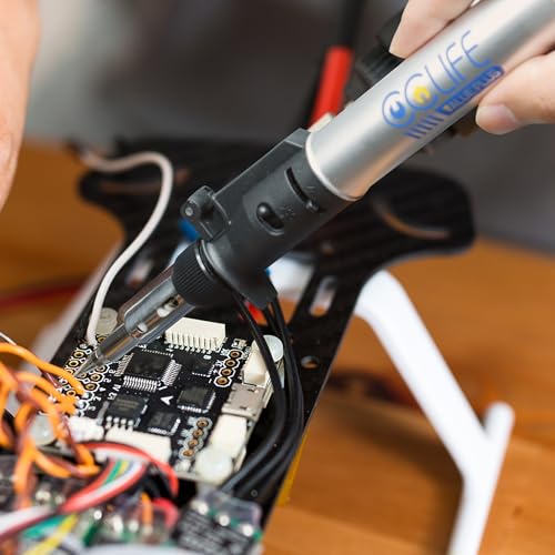 Non richiede alimentazione elettrica: Il saldatore a gas butano non ha bisogno di alimentazione elettrica ed è senza fili. Elimina l'ingombro dei cavi di alimentazione ed è uno strumento pratico per le attività all'aperto e in luoghi privi di elettricità. Ciò rende le operazioni di saldatura più comode e flessibili.