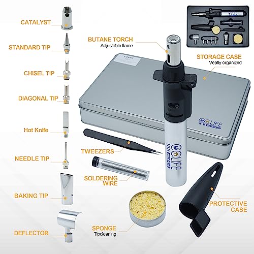 CCLIFE 13pezzi saldatore gas butano con stagno saldatura Saldatore a Butano per saldatura, fusione, taglio a caldo, termoretrazione, pirografia e sverniciatura