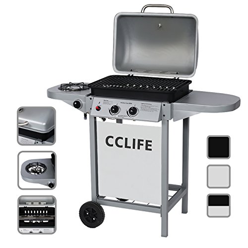 CCLIFE BBQ Barbecue griglia Giardino Barbecue a Gas con 2+1 Bruciatori Principali del Color Argento o Nero, Dimensione:2+1 Argento