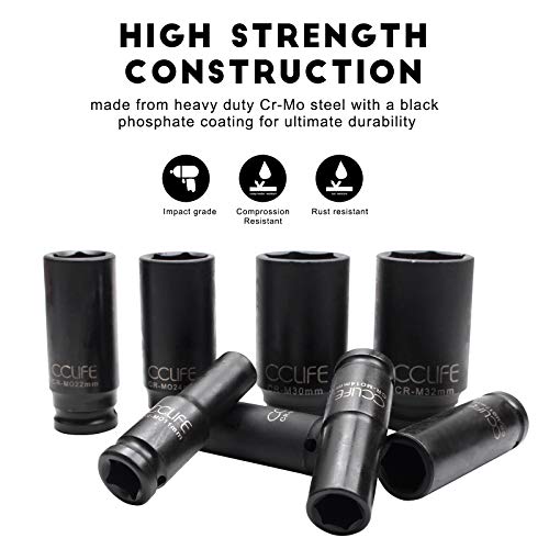CCLIFE Set Bussole a Impatto, Bussole a Impulsi Profondo da 1/2" Prese Metriche Esagonale 10-32 mm, 16 Pezzi