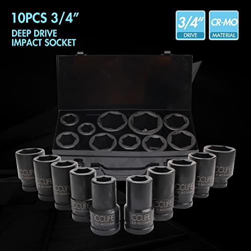 CCLIFE Set Bussole a Impatto Profondo da 10pezzi | 3/4' Prese di Impatto (22-50 mm) I chiavi a impulsi per Chiavi a Bussola