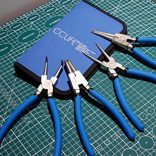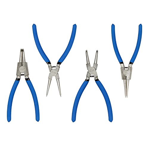 CCLIFE 4 Pezzi Pinza per Seeger 150 mm con Maniglie Antiscivolo Pinza anelli kit Pinze Seeger interni esterni