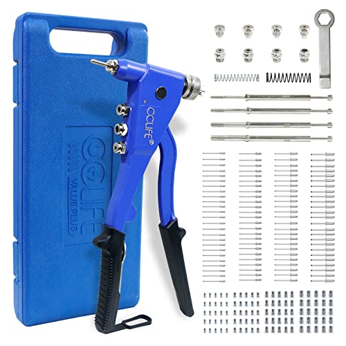 CCLIFE Pinze per rivettare 2 in 1,set di pinze per rivettare strumento professionale pinze per dadi per 100 threaded rivet nuts M3 M4 M5 M6 and 100 rivets 2.4 3.2 4.0 4.8 mm