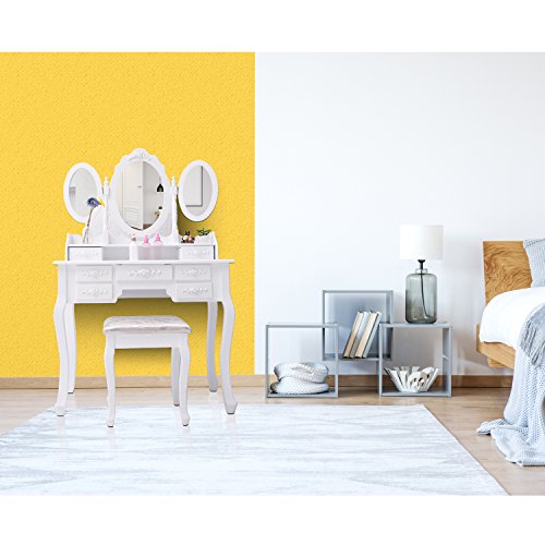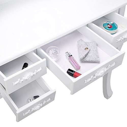 CCLIFE toeletta trucco, toeletta con specchio 3 specchi 7 cassetti(intaglio) 1 Sgabelli 360° specchio ovale d'inclinazione regolabile a Bianco mobile toeletta