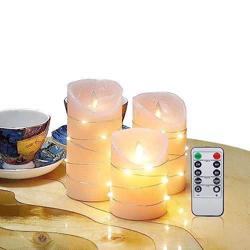 CCLIFE velas elettriche e LED in vera cera con telecomando, funzione timer, paraffina, funzionamento a batteria,Rosa 3 pezzi