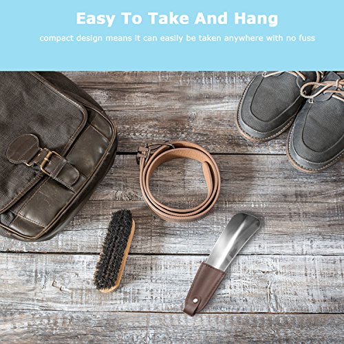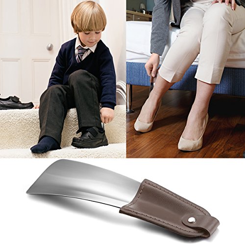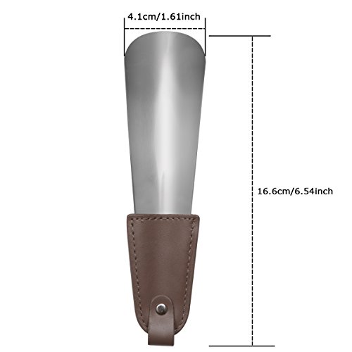 CCUCKY Calzascarpe Portatile da 16.6cm, Calzascarpe in Metallo con Cinturino in Pelle, Facile da Infilare, Ideale per l'Uso in Viaggio
