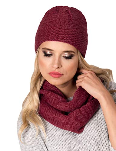 Fil'loo CD-069 Cappello + Scaldacollo Completo Invernale Classico Monocolorato, Viola,UNI