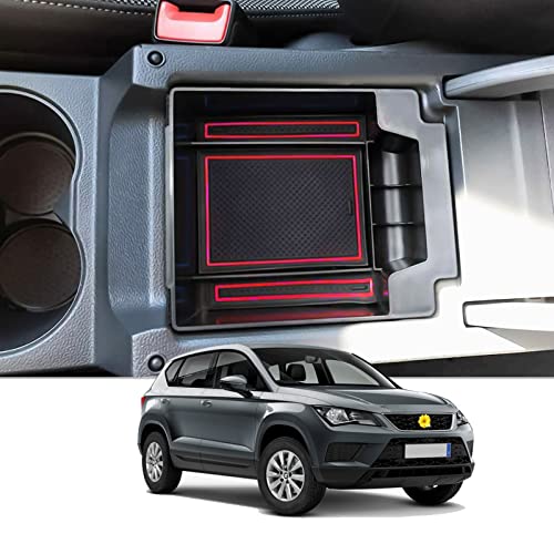 CDEFG Seat Ateca 2017-2021 2022 2023 Vano Portaoggetti da Bracciolo, Ateca FR Scatola di Controllo Centrale del Bracciolo Scatola di Immagazzinaggio con tappetino antiscivolo Accessori per Ateca 2022