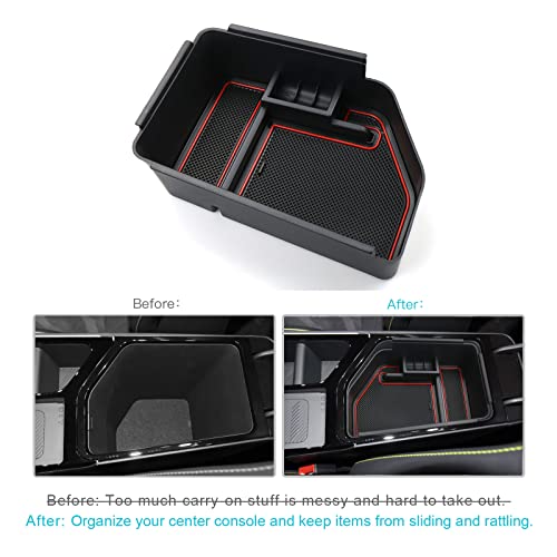 CDEFG Compatibile con Kia EV6 2022-2024 Vano Portaoggetti Bracciolo Scatola di Controllo Centrale del Bracciolo Scatola di Immagazzinaggio Organizer con Tappetino Antiscivolo Auto Accessori (Rosso)
