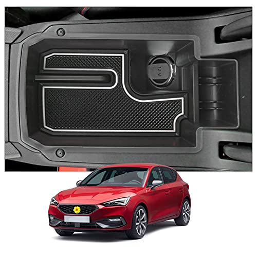CDEFG Compatibile con Seat Leon mk4 KL Cupra Formentor 2020-2023 2024 Vano Portaoggetti Bracciolo Scatola di Controllo Centrale Organizer con Tappetino Antiscivolo Leon 4 2024 Accessori (Bianco)
