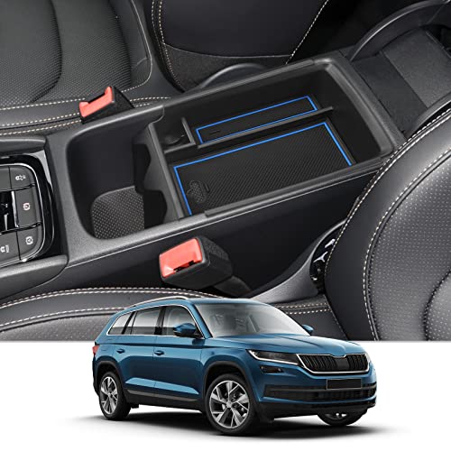 CDEFG Compatibile con Skoda Kodiaq 2016-2022, Vano Portaoggetti da Bracciolo Scatola di Controllo Centrale Scatola di Immagazzinaggio Organizer per Auto Kodiaq Accessori (Blu)