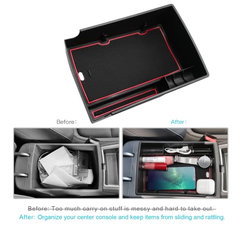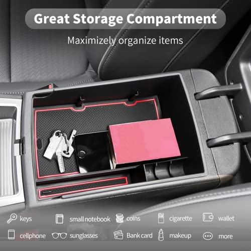 CDEFG Vano Portaoggetti da Bracciolo per Kona Electric EV 2020+, Scatola di Controllo Centrale Scatola di Immagazzinaggio con tappetino antiscivolo Accessori Interni per Auto (Rosso)