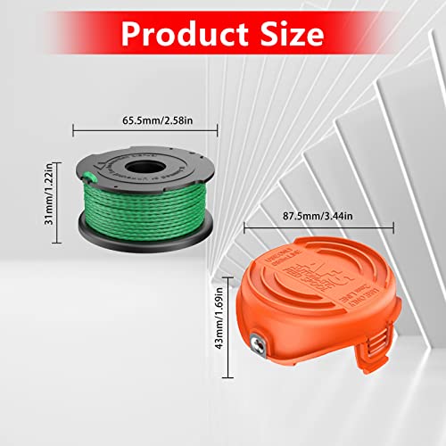 CDIYTOOL Bobine di Ricambio per decespugliatore Nero e Decker, 2 mm 20 Piedi autofeed per GL8033 GL9035 Tappo per tagliaerba per 90583594 (6 Bobine + 2 Tappo)