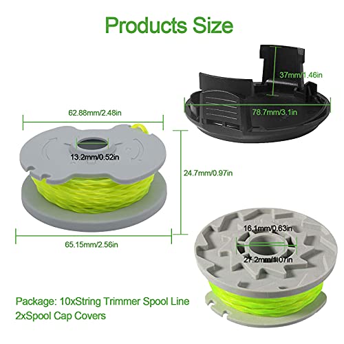 CDIYTOOL - Bobine di Ricambio per Worx WA0014 WG168 WG184 WG190 WG191 Weed Eater String Edger Bobina di Ricambio per Auto Feed 6,1 m 0,2 cm con Tappi WA0037 (6 Bobine, 2 Tappi)
