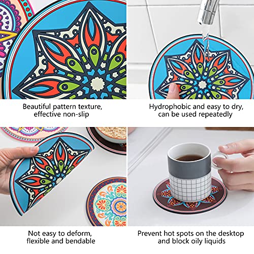 CDIYTOOL - Sottobicchieri in silicone, 6 sottobicchieri con mandala per bevande, antiscivolo, resistenti al calore, riutilizzabili, per bevande calde e fredde, per casa, bar, cucina, ristorante