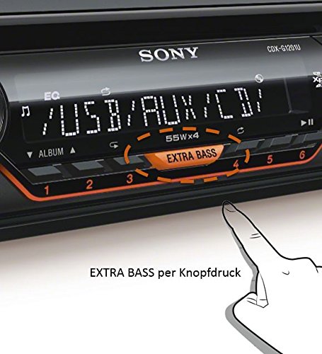 Sony CDXG1201U Autoradio con CD, Ingresso AUX e USB, Android Music Playback, Potenza Massima 4 x 55 W, ExtraBass, Illum. Arancione