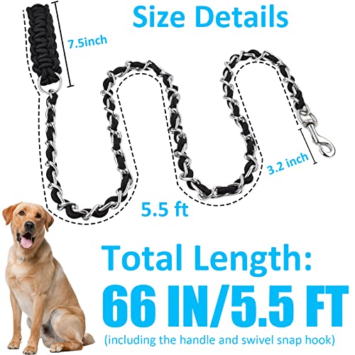 Cdycam Guinzaglio a catena mentale resistente per cani di taglia grande per cani di taglia media con manico in corda 1,7 m (L (18,1 kg-36,3 kg), nero)
