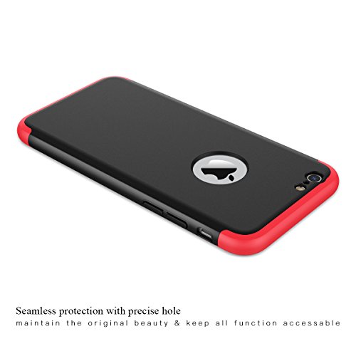 CE-Link Cover per Apple iPhone 6 6S 360 Gradi Full Body Protezione, Custodia iPhone 6 Silicone 3 in 1 Antishock e Antiurto, iPhone 6S Case - Rossa + Nero