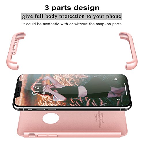 CE-Link Cover per Apple iPhone X 360 Gradi Full Body Protezione, Custodia iPhone X Silicone Rigida + Pellicola Vetro Temperato 3 in 1 Cover iPhone X - Rose Gold