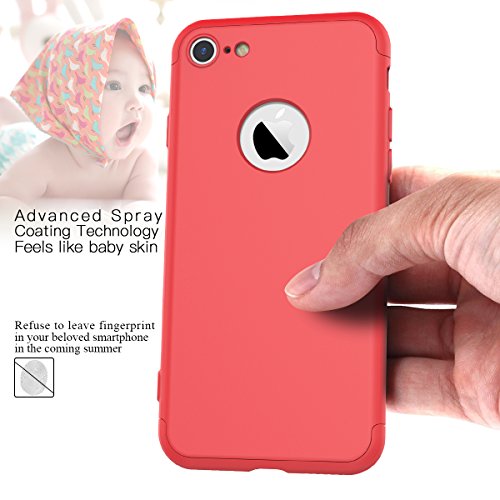 CE-Link Cover per Apple iPhone 8 360 Gradi Full Body Protezione, Custodia iPhone 8 Silicone Rigida Snap On Struttura 3 in 1 Antishock e Antiurto, Cover iPhone 8 Case Antigraffio Molto Elegante - Rosso