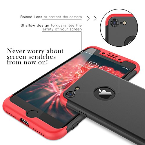 CE-Link Cover per Apple iPhone 7/ iPhone 8 360 Gradi Full Body Protezione con Pellicola Protettiva Vetro Temperato Nero Custodia iPhone 7 Silicone Rigida 3 in 1 iPhone 8 Case - Nero Rossa