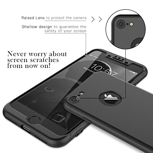CE-Link Cover per Apple iPhone 7/ iPhone 8 360 Gradi Full Body Protezione con Pellicola Protettiva Vetro Temperato Nero, Custodia iPhone 7 Silicone Rigida Snap On Struttura 3 in 1 Antishock e Antiurto, iPhone 8 Case Antigraffio Molto Elegante - Nero + Vetro Temperato