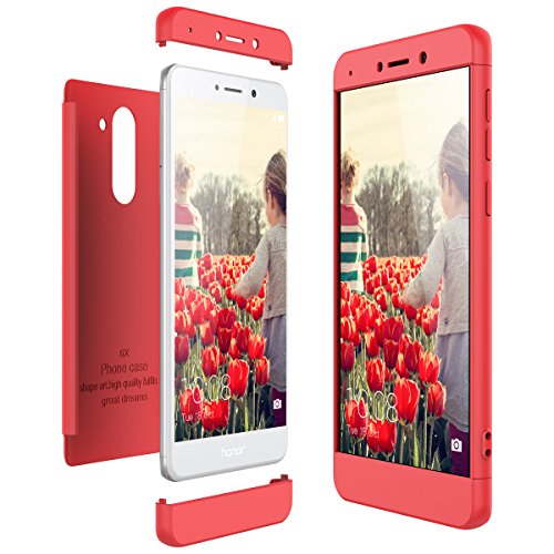 CE-Link Cover per Huawei Honor 6X 360 Gradi Full Body Protezione, Custodia Honor 6X Silicone Rigida Snap On Struttura 3 in 1 Antishock e Antiurto, Honor 6X Case AntiGraffio Molto Elegante - Rosso