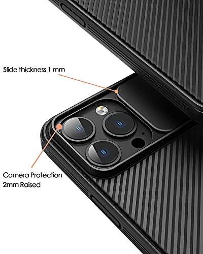 CE-Link Cover per iPhone 13 Pro, Custodia Protettiva con Protezione Proteggi Copri Fotocamera Scorrevole, Ultra Sottile Leggero Resistente Hard PC Rugged Antiurto Anti Graffio Rigida Bumper Case, Nero