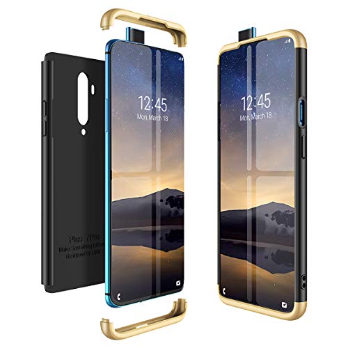 CE-Link per Cover OnePlus 7T PRO Custodia 360 Gradi Full Body Protezione Silicone Rigida Snap On Struttura 3 in 1 Antishock e Antiurto Case - Oro + Nero