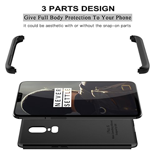 CE-Link Cover OnePlus 6 360 Gradi Full Body Protezione Custodia OnePlus 6 Silicone Rigida Snap On Struttura 3 in 1 Antishock e Antiurto Case AntiGraffio Molto Elegante - Nero